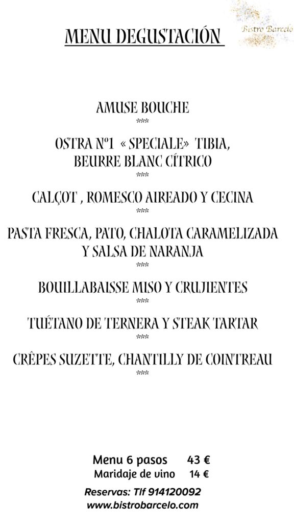1 aperitivo ,2 Entrantes , 1 pescado , 1 carne y un postre.